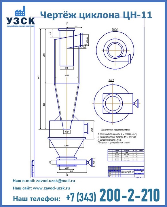 Циклоны ЦН 11 можно купить в УЗСК в Северодвинске. Мы предлагаем самые выгодные условия и оптимальную стоимость для приобретения данного оборудования. Сделать заказ очень просто, требуется только оформить заявку на нашем сайте или позвонить по указанному телефону. УЗСК также занимается реализацией и производственным выпуском циклонов и прочих изделий под заказ, цена на нашу продукцию формируется исходя из индивидуальных требований заказчика и специфики производства. Мы производим циклоны из высококачественной нержавеющей стали (толщина 3-4 мм), при необходимости, толщина конечного изделия может быть увеличена.