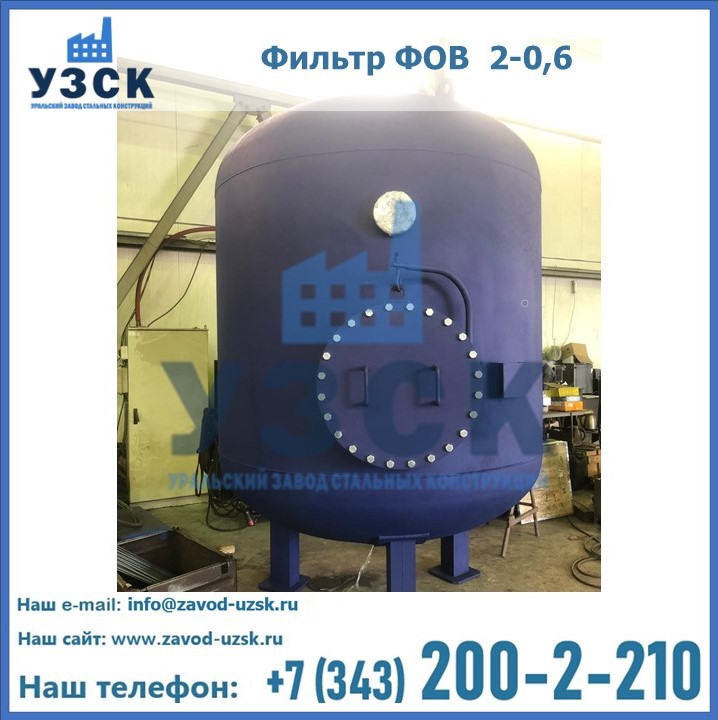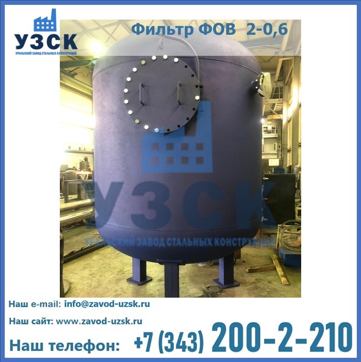 Удаление взвешенных веществ различного уровня дисперсности из рабочих жидкостей эффективно проводит фильтр осветлительный типа ФОВ (скорый или механический) — вертикально-цилиндрической формы установка, разработанная для систем водоподготовки различного класса. Оборудование представляет собой однокамерный агрегат для очистки воды рекомендованный для применения на станциях очистки стоков, в коммунальных котельных, на ТЭЦ, в промышленных отопительных системах и пр. Заказать производство ФОВ фильтров предлагает наш Уральский завод стальных конструкций в Северодвинске. У нас можно купить фильтрационное оборудование различного класса и типа, в том числе фильтры ФОВ из нержавеющей стали.