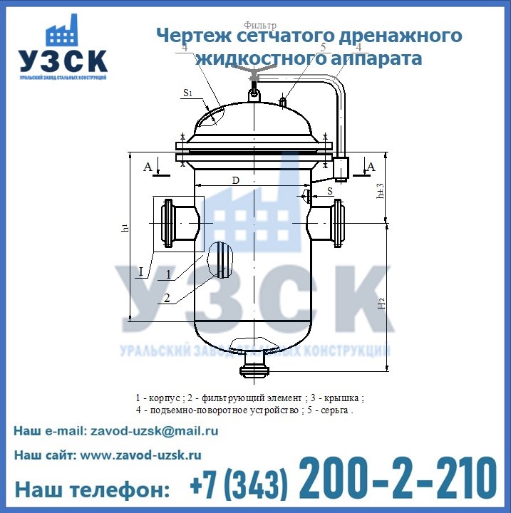 Фильтр сетчатый дренажный используется для очистки и фильтрации газов и неоднородных жидкостей на предприятиях нефтеперерабатывающей отрасли, нефтебазах, АЗС. Их установка поможет предупредить засорение и защитить от повреждений твердыми элементами, которые могут входить в состав самих нефтепродуктов, которые подвергаются переработке. Уральский завод стальных конструкций в Северодвинске, находящийся, занимается производством емкостного и иного промышленного оборудования, в том числе изготовлением сетчатых дренажных фильтров СДЖ.